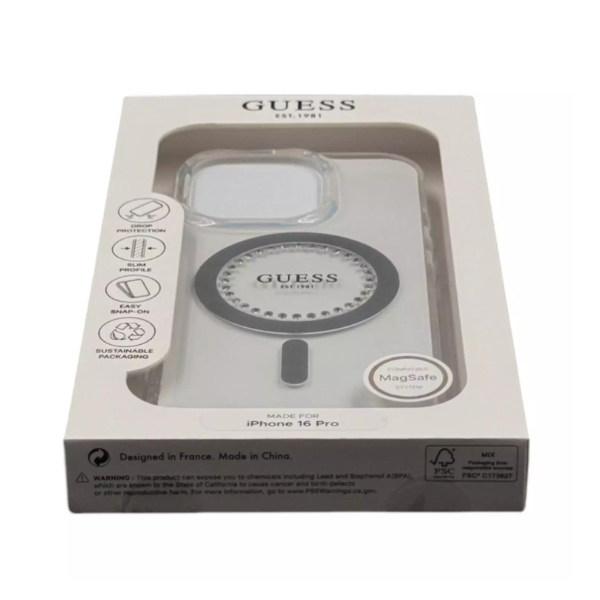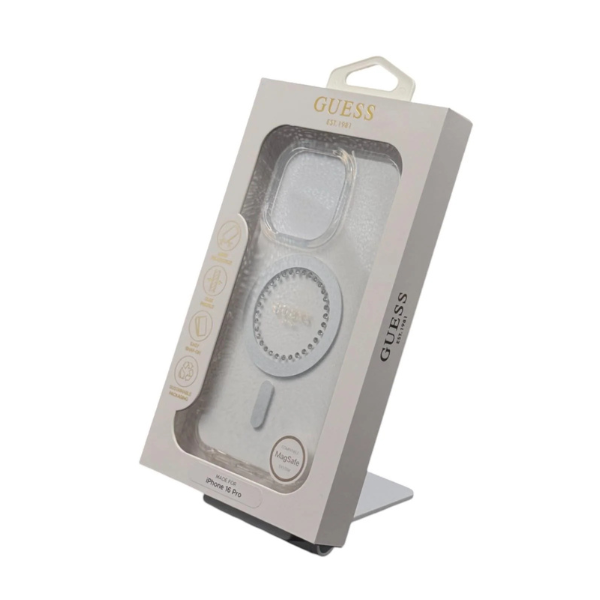 Coque GUESS compatible MagSafe pour iPhone 16 Pro — Transparente élégante& chic