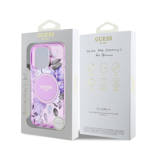 Coque Guess IML avec motif floral — compatible MagSafe pour iPhone 16 Pro Max