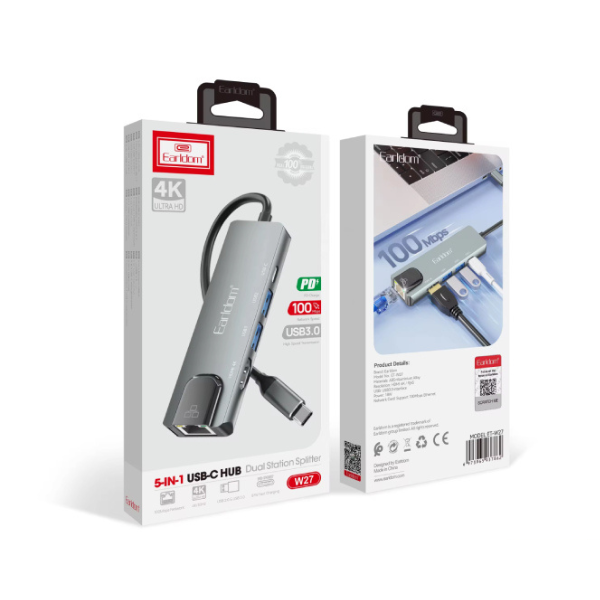 Hub USB-C 5-en-1 Earldom ET-W27 avec HDMI 4K, Ethernet & Charge Rapide