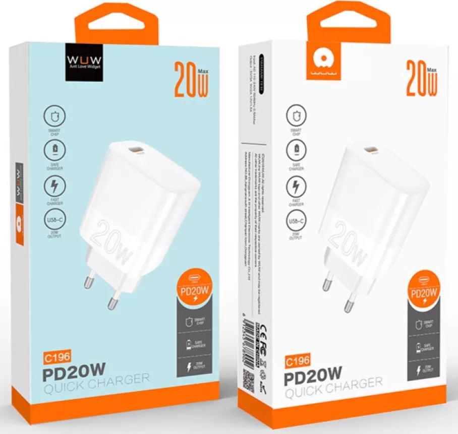 Le chargeur WUW C196 USB-C blanc est un adaptateur puissant de 20 W utilisant la technologie GaN PD, conçu pour recharger rapidement et efficacement téléphones, tablettes et autres appareils portables. Sa compatibilité étendue avec divers appareils garantit une alimentation stable tout en préservant la santé de la batterie sur le long terme. Compact et fiable, il constitue une solution idéale pour remplacer un chargeur perdu ou pour disposer d’un chargeur supplémentaire.