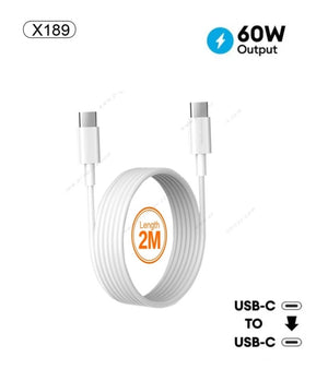 X189 Câble de Charge Rapide 60W &Transfert Data Type-C vers Type-C 2 Mètres